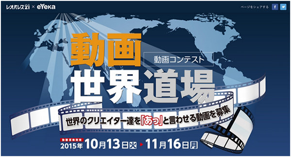 株式会社レオパレス21は、60秒以内の動画を募集するコンテスト「動画世界道場」を開催中。2015年11月16日(月)まで、作品の応募を受け付けている。世界166カ国で約33万人のクリエイターが登録している“共創プラットフォーム”の「eYeKa」とコラボレーションした企画。募集は国内のみにとどまらず、「eYeKa(アイカ)」を通じて世界166カ国以上でコンテストの告知を行って参加を募っている。