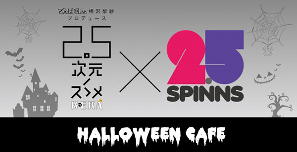 2015年10月23日(金)から11月1日(日)まで、2.5SPINNSにて「相沢梨紗(でんぱ組.inc)2.5次元ノスゝメ×2.5SPINNS Halloween Cafe」が開催される。女性アイドルグループ「でんぱ組.inc」の相沢梨紗さんのキュレーションによる作品展示/商品販売を行うコラボレーション企画。「でんぱ組.inc」がリリースした配信限定シングル「永久ゾンビーナ」の発売を記念したイベントにもなっており、相沢さんの魅力が詰め込まれたハロウィン空間が展開される。入場無料、特設カフェではワンオーダーが必要で、営業時間は12:00〜19:00。