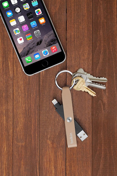 「キーチェーン」は、アルミ素材とメタリック仕上げを採用したキーホルダーデザインのケーブルで、Lightningケーブル部は360度回転が可能。縦方向も上下70度の角度で曲がる柔軟な材質で、Lightningケーブルとして使用しないときはアルミボディの中に収納できる。カラーはゴールド、シルバー、グレーの全3色。