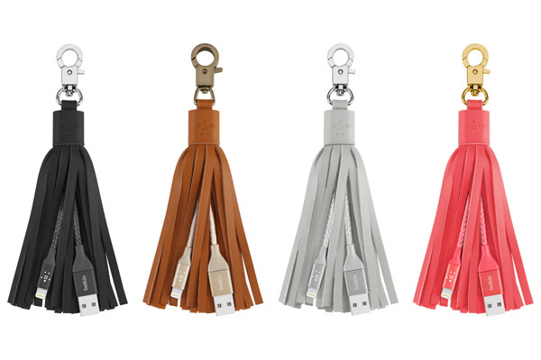 「レザータッセル」は、天然皮革素材のレザータッセルの中にLightningケーブルが隠されたアクセサリーで、ハンドバッグやバッグのアクセントとして使用できる。カラーはゴールド、シルバー、ピンク、ブラックの全4色。