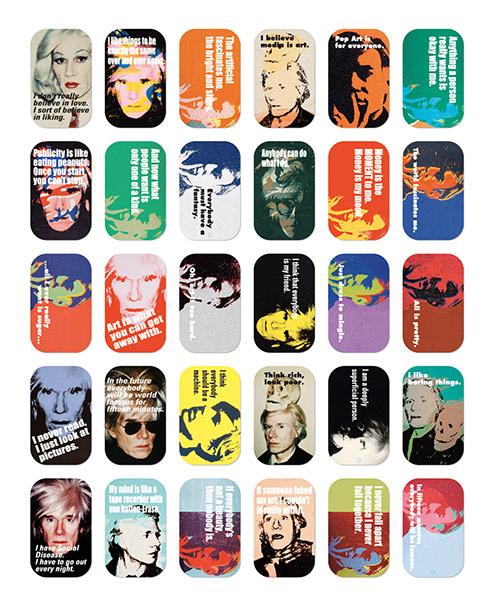 UHA味覚糖株式会社は、アンディ・ウォーホルの作品をデザインしたアート缶に入っている“のど飴”の第4弾商品として「味覚糖のどタブレット缶 アンディ・ウォーホル」を発売した。アート缶には30種類のバリエーションがあり、全てアンディ・ウォーホルのセルフポートレートと彼の名言によるデザインが採用された。フレーバーは3種類で、ミント/グレープ/コーラがラインナップされている。価格はオープンで、市場予想価格は各200円前後(税抜)。