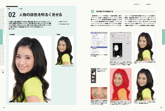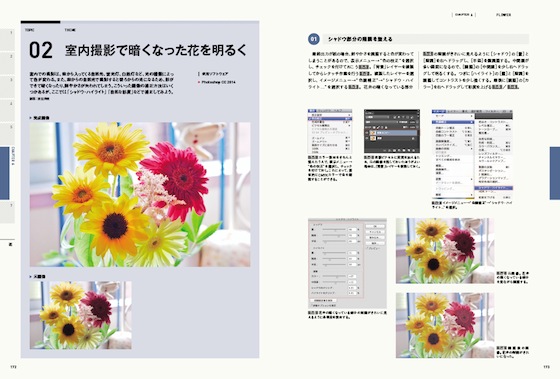 補正作業のテクニックは細かく挙げていったらキリがないのだが、本書は「室内で暗くなった花を明るく」「人物の顔色を明るく見せる」などの代表的な補正事例(全33例)を出し、補正の仕組みと美しい仕上がりへの道筋をとてもわかりやすく紹介している。また、実際に補正に扱うPhotoshopなどソフトウェアについても触れており、ソフトの活用法も懇切丁寧。ひとつひとつの事例をもとに確かめて作業していけば、自ずと総合的なスキルは上がっていくことだろう。