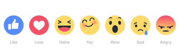 これらの「リアクション」は既にアイルランドとスペインなどでテスト導入されていて、テスト版では「いいね!」(Like)、「愛してる」(Love)、「うけるね」(Haha)、「イェイ!」(Yay)、「ワォ!」(Wow)、「悲しいね」(Sad)、「頭きた」(Angry)の7パターンが用意されていた。これまでさかんに噂されてきた「よくないね」(dislike)ボタンは今回も導入されていないが、「悲しいね」「ひどいね」で十分代用可能になっている。