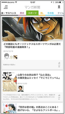 同サービスは、マンガに特化したニュースキュレーションサービスで、国内のメディア各社が提供するマンガのニュースや新刊情報を集約して閲覧できる。サービスキュレーターには、ホリエモンこと堀江 貴文氏や、「宇宙兄弟」や「ドラゴン桜」の編集担当者として知られる佐渡島庸平氏などが参加する。