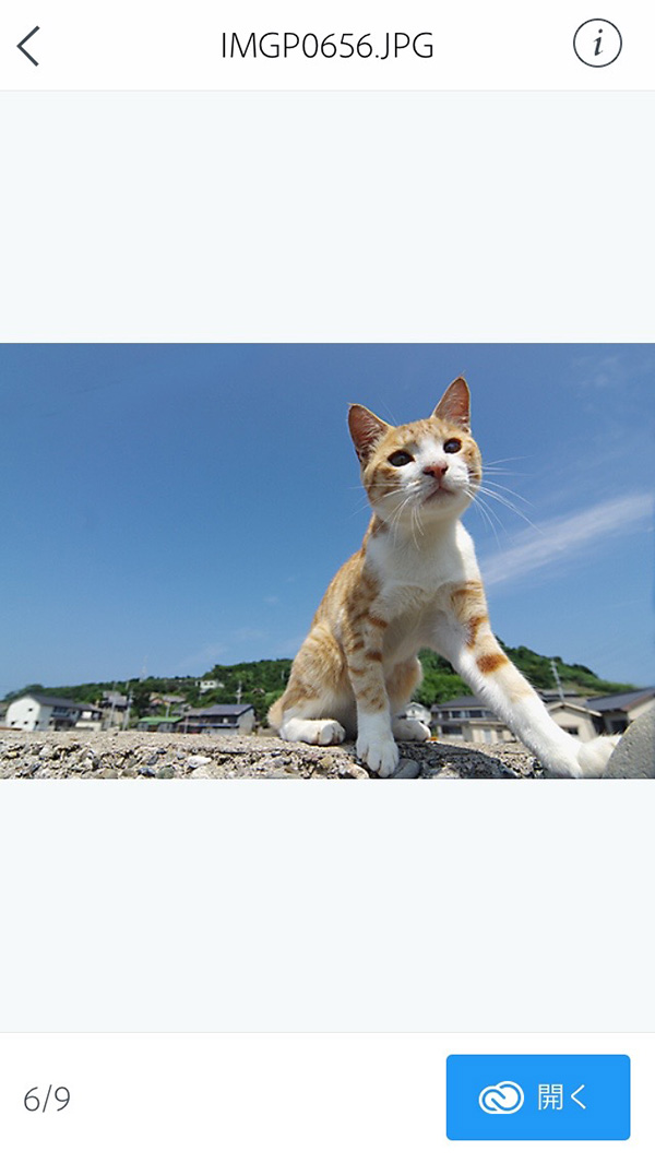 今回は、Creative Cloudライブラリで公開している石原さくら氏が撮影した画像を使用する。「Creative Cloud」の「ファイル」に保存した画像から、加工する画像を選択し、右下の「開く」をタップする。