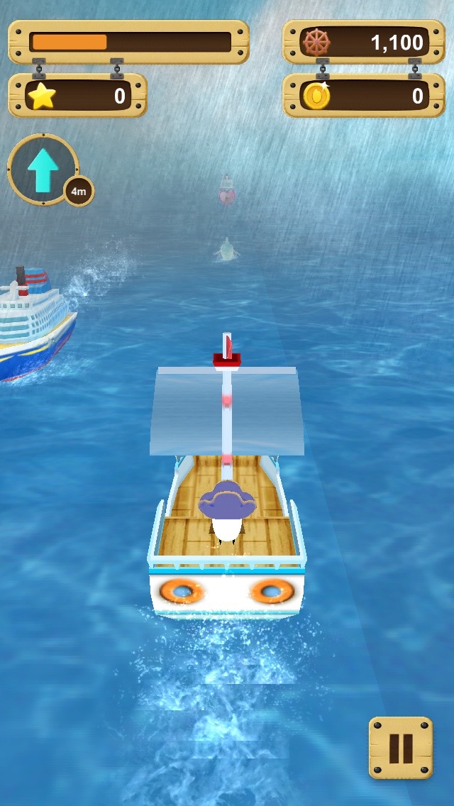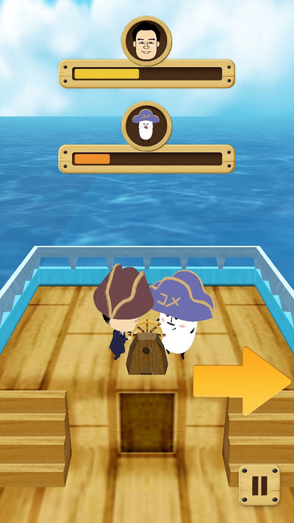 本アプリは、「コメ助」が操る帆船の航海した距離を競うゲームアプリ。海賊やサメ、タコ、悪天候などから船を守りつつ大海原を進んでいくアクションタイプだ。ゲーム画面では、フリックで船を守りながら進み、体力が減ったらハートを取って回復したり、コインを獲得してコメ助ファミリーの「お助けキャラ」をゲットしたりしてランキングトップを目指す。