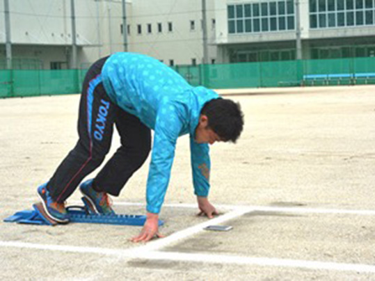 地面に置いたスマートフォンの画面にスタートの合図を知らせて、健聴者と同じタイミング、同じ体勢でスタートが切れるようになったとしている。