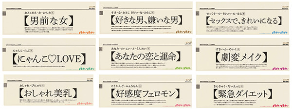 「anan」の表紙撮影を行えるグラフィックを用意した特設フォトブースも設置され、創刊2000号記念の限定表紙をバックに、表紙モデルになりきって記念撮影を楽しむことも可能。さらに関連して、4月12日(火)から7日間限定で、東京メトロ全9路線の中吊り広告では、女性の気持ちを詰め込んだ“ananワード”を用いた「anan言葉辞典」が披露されており、それぞれの路線の各1編成で「中づり貸切電車」として展開されている。