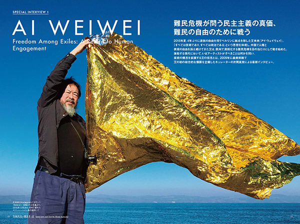 本書では、艾未未(アイ・ウェイウェイ)氏 / ヴォルフガング・ティルマンス氏 / ヒト・シュタイエル氏へのインタビューが掲載された。艾未未氏は、難民の多くが到着するギリシャ・レスボス島にスタジオを設け、難民問題をテーマにしたドキュメンタリーを制作中のアーティストだ。ヴォルフガング・ティルマンス氏は、6月23日に行われる「EU離脱の是非を問う国民投票」を前にして離脱反対を表明し、フリーダウンロードできるポスタープロジェクトを始動。ヒト・シュタイエル氏は、アート界の構造の問題提起、労働環境やそれが引き起こす搾取に踏み込んだ分析を展開しており、巻頭インタビューでは各人の思いが語られている。