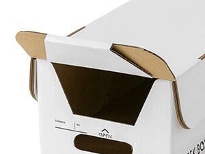従来のペーパーボックスは重ねて収納できる便利さとは裏腹に、一度重ねてしまうと下の箱の中身を確認する際には上の箱をすべて移動しなければならない不便さがあった。この煩わしさを何とかしたいという発想のもと、設置されたのが製品正面の「覗き穴」。どれだけ上に重ねても正面の窓から中身を確認することができる開閉式の窓が付けられた。
