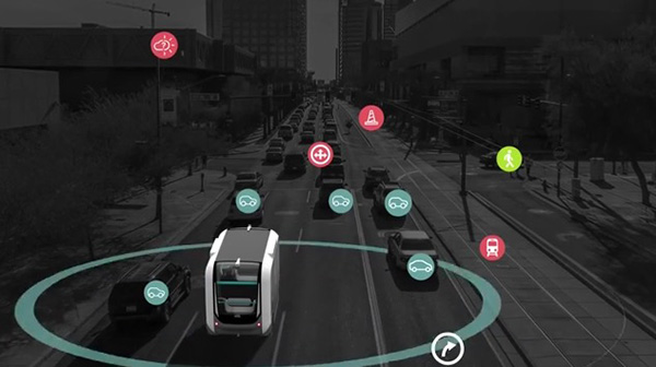 新たなプロジェクト名はIoTを活用した「Olli」。3Dプリント製の12人乗りの電気ミニバスで、IBMの人工知能「Watson」を搭載している。車体には30以上のセンサーが搭載され、そこから送られる交通データをクラウドベースの「Watson」が分析・学習して運行に役立てる。