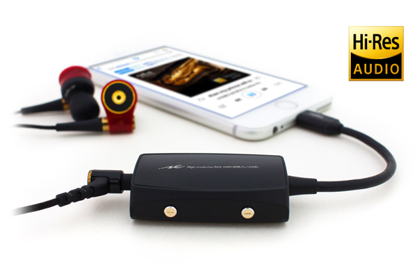 同製品は、24bit/192kHzまでのハイレゾ音源の再生に対応したDAC搭載ポータブルヘッドホンアンプ。iOS端末とLightningコネクタで接続するだけで、ハイレゾ音源をデジタルでiOS端末から取り出し、イヤホンやヘッドホンに出力できる。