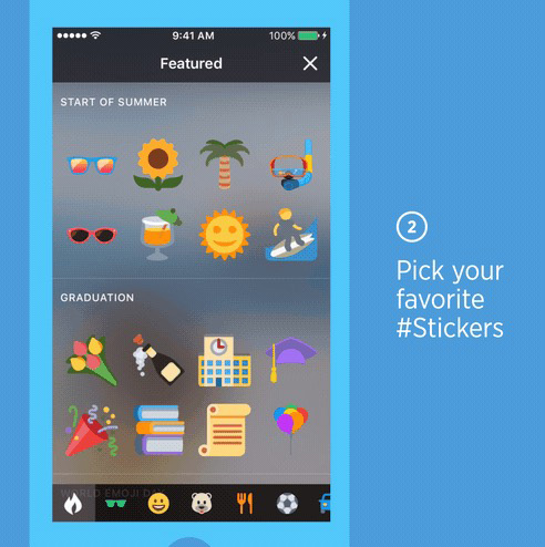 本機能は、写真加工と新たな繋がりをもたらす写真編集ツール。これまで、フィルター、タブ、トリミングなどがあった写真編集機能に追加されるもので、投稿写真にサングラス・ヒマワリなどの「夏の始まり」や卒業帽・クラッカーなどからなる「卒業」など、テーマ分けされた数百種類のステッカーを自由に貼ることができる。