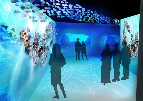 本イベントは、東京駅3DプロジェクションマッピングやNHK大河ドラマのタイトルバックなどの仕事で知られる株式会社ネイキッドが企画 / 演出 / 制作を手掛けた。これまで数々の水族館での空間演出に携わってきた経験を生かし、まるで海へ潜っていくかのような“旅”を演出。映像 / 音 / 香りなど五感を通して体感できるイベントで、大人も子どもも楽しみながら海を学べる。主なコンテンツは、床に投影された夜光虫の光による波が海の世界への入り口を演出する「Wave of lives」、オブジェへの映像投影でイワシの群れが泳いでいるかのように見える「Symphony of lives」、インタラクティブな演出で可愛い海の生き物たちと遊べる「Delight of lives」、幻想的な深海世界を球体の中へ閉じ込めたイルミネーションオブジェ「OASIS GATE」など。