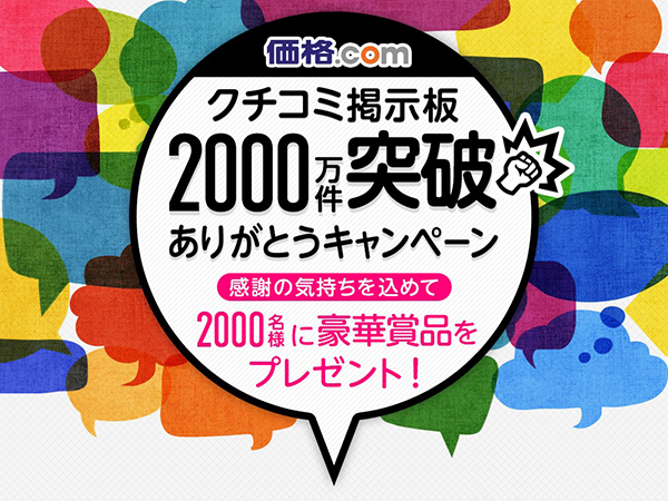 価格.com、クチコミ2000万突破のキャンペーンで2000名にパソコンやカメラプレゼント