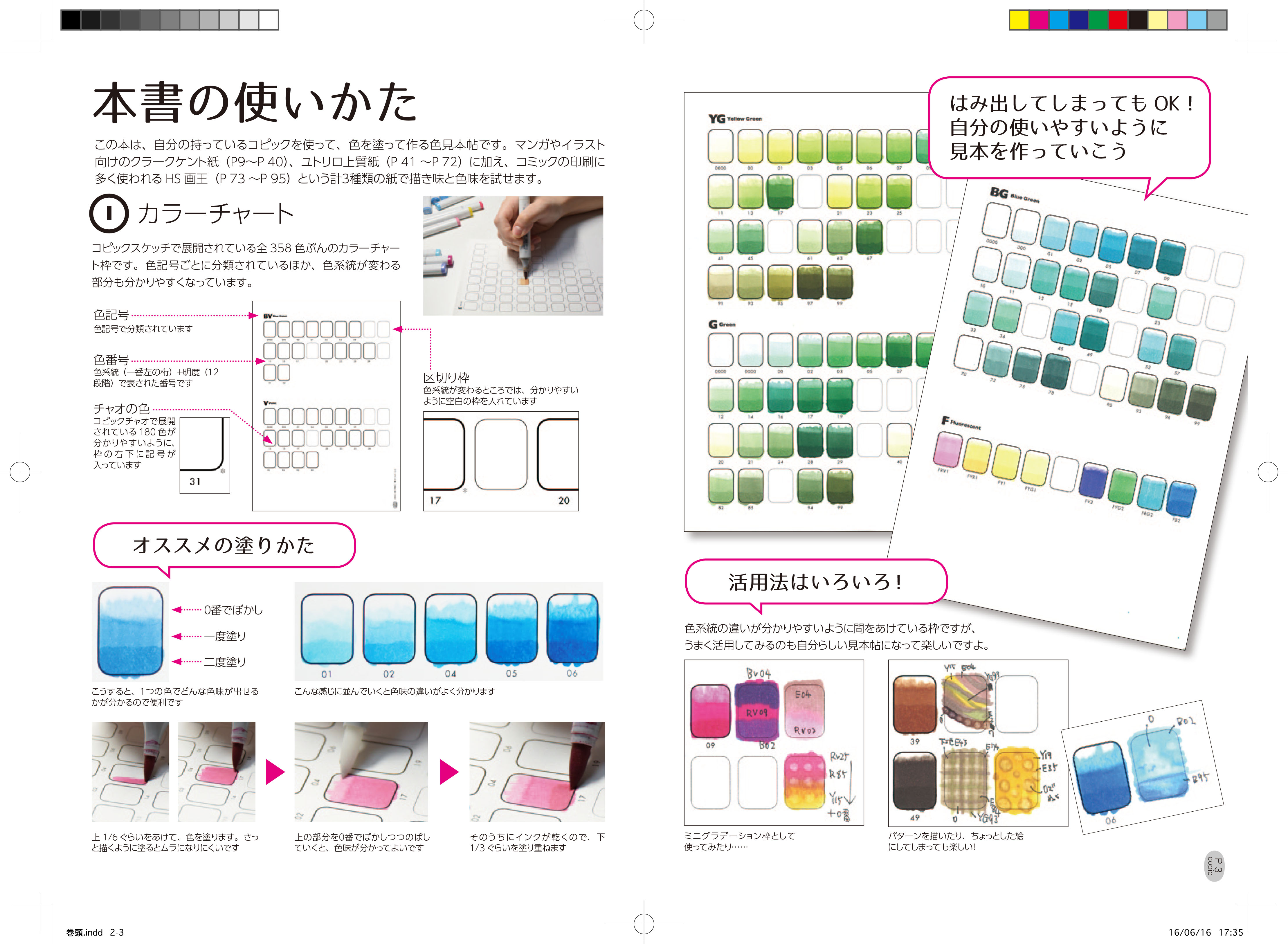 初心者も上級者も使える「作ろう!!自分だけのコピック色見本帖」発売。3種類の紙で構成された実用書