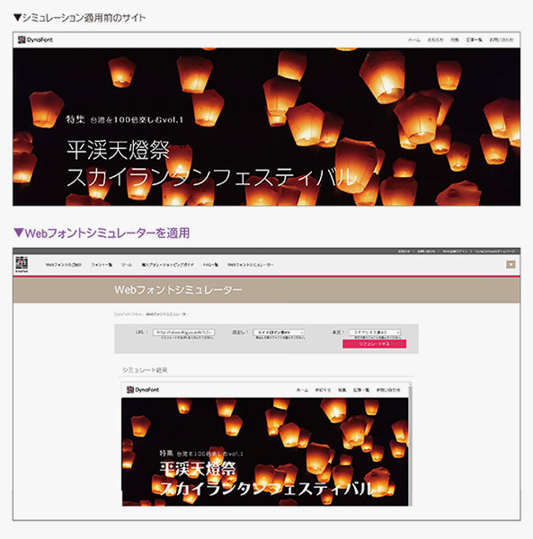 今回追加された2つの機能は、いずれもユーザーからの要望が多かったもの。特に「Webフォントシミュレーター」は、対象サイトのURLを入力して使用してみたいフォントを選択すると、Webフォントが適用された状態をシミュレーションできるため、Webフォント自体の仕組みを理解しやすく、サービスの導入を検討しているユーザーにも非常に役立つ。なお、「DynaFont Online」には30日間無料で使用できる体験プランも用意されており、それを活用することで「文字詰め機能」の体験も可能。