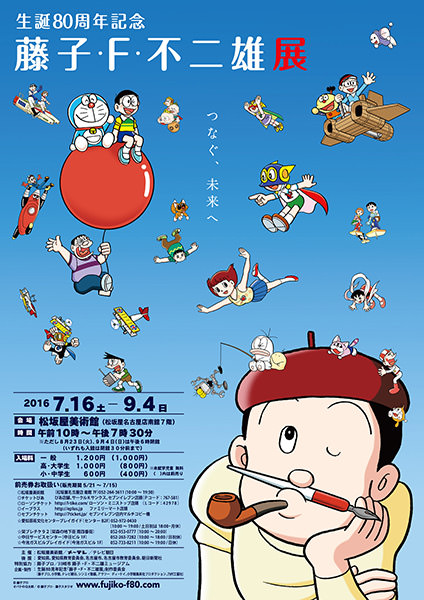 2016年7月16日(土)より、松坂屋美術館にて、“生誕80周年記念「藤子・F・不二雄展」”がスタートした。会期は9月4日(日)までで、会期中無休。藤子・F・不二雄(1933〜1996年)の生誕80周年を記念した企画で、会場には体験型の展示もあり、家族で楽しめる展覧会となっている。開館時間は10:00〜19:30(8月23日と9月4日は18:00閉館 / いずれも入館は閉館30分前まで)で、当日券での入館料は一般1200円 / 高校・大学生1000円 / 小・中学生600円 / 未就学児無料。