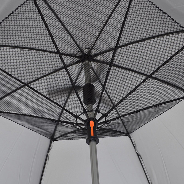 傘の裏にはUVカット効果のあるシルバーコーティングを施しており、晴れの日も日傘として使用できる。傘の骨は丈夫な8本骨を採用しており、完全に傘を開かないとファンが回らない安心設計となっている。