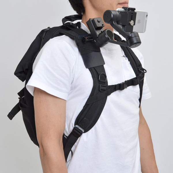 同製品は、iPhoneやAndroidスマートフォンの手ブレを防ぐことができるスマートフォン用の電動スタビライザー。ウェアラブルになることが特徴で、GoPro用の各種マウントを使うことにより、肩や胸、腕などに装着できる。また、マウントを変えることにより、自転車などの乗り物に付けることもできる。