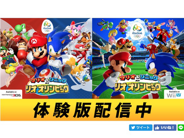 任天堂株式会社は3日、日本時間6日(一部競技では既に開始済み)に開幕するリオデジャネイロオリンピックに合わせて、リオオリンピックを舞台にした公式スポーツゲーム「マリオ&ソニック AT リオオリンピック」の無料体験版を配信開始すると発表した。