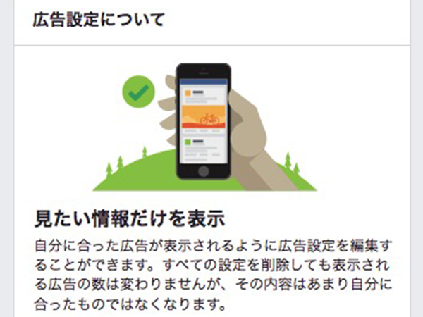 発表では、多くのデジタル広告がインターネットコンテンツの進歩に追いついておらず、ユーザーが求めていない広告を多く表示していると指摘。まずは、ユーザーが自分のFacebookに表示する広告について、設定を管理できるツールの機能を拡張するとしている。ユーザーは広告設定を開き、「テクノロジー」や「ビジネス・業界」など、特定のジャンルの広告について自分で選んで非表示にできる。また、顧客リストに入っている企業・団体からの広告も遮断できる。