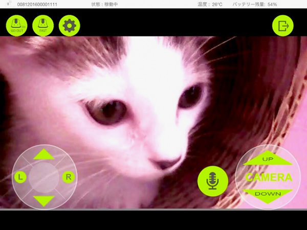 本体を自宅のWi-Fiに接続することで使用でき、さくらインターネット株式会社の「さくらのクラウド」を経由する仕様で、固定IPアドレスは不要。専用アプリは当初はiOS 8.4以降に対応しており、近日中にAndroid版の配信も予定されている。また、本体に赤外線リモコンが内蔵されているため、将来的には遠隔地からの自宅のエアコン操作も実現される予定。連続使用可能時間は約6時間で、充電ステーションは別売となっている。