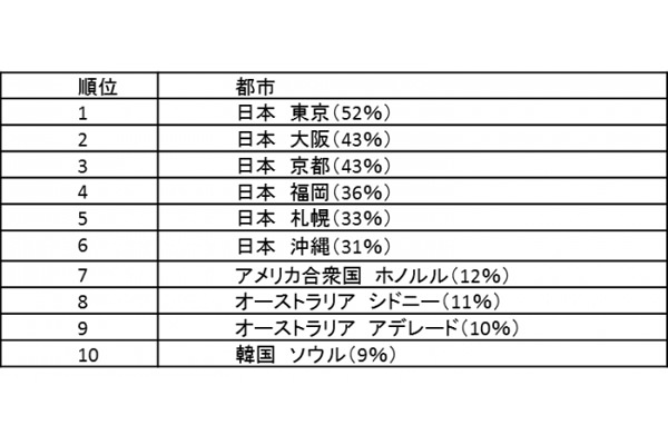 このほか、ポケモンを探すためにどの都市に行ってみたいかという調査では、オーストラリアが最も人気のある旅行先であることが分かった。オーストラリア内で最も人気のある都市はシドニー(11%)で、アデレード(10%)とメルボルン(6%)が続いている。一方、日本の国内では、52%がポケモンを探すために「東京」に旅行したいと回答しており、その次には大阪(43%)と京都(43%)が続いている。