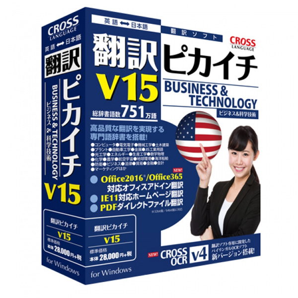 株式会社クロスランゲージは、Windows用の英日・日英翻訳ソフト「翻訳ピカイチ V15 for Windows」を9月9日に発売すると発表した。