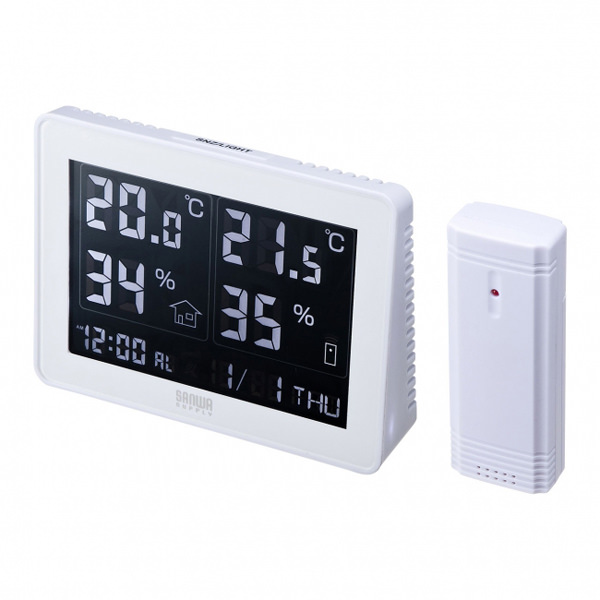 サンワ、2カ所の温度・湿度を表示できるワイヤレスデジタル温湿度計を発売