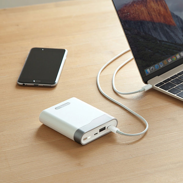 同製品は、容量13400mAhのモバイルバッテリー。充電ポートはUSB AポートとUSB Type-Cポートを搭載しており、MacBookやNexus 6PなどのUSB Type-C充電機器にも、USB Type-C充電ケーブルを使って充電できる。USB Aポートの出力は最大2.4Aで、USB-Cポートの出力は最大3A。