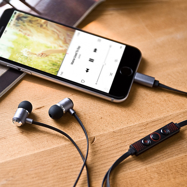 ハウジングは剛性のあるアルミ製で、イヤホン形状は遮音性の高いカナル型を採用している。イヤーピースは3サイズが付属しており、耳に併せて好みの大きさを選択できる。また、手元で制御できるコントローラーが付いており、音声再生時の曲送りや再生/停止の操作を行える。