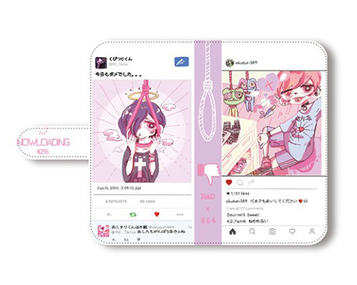 今回の「iPhone7ケース特集」では、世紀末、わかる、ぶんけい、meru、柴尾、000/おれそ、めありー、F*Kaori、mrk、のむらこいち、南無子、百瀬たろうの計12名(敬称略)が手掛けた商品を紹介。いずれも手帳型ケースで、オリジナルキャラが描かれたモデルや、可愛いビジュアル、不思議なデザインなどバリエーション豊かだ。“歌い手”や“踊り手”が手掛けたケースもラインナップ。基本的に1クリエイターにつき1アイテムが紹介されているが、百瀬たろう氏によるケースでは、対になった“おとこのこ”モデル「momot-boy」と“おんなのこ”モデル「momot-girl」が用意されている。それぞれの商品は既に予約注文受付が開始されており、9月下旬の発送を予定。