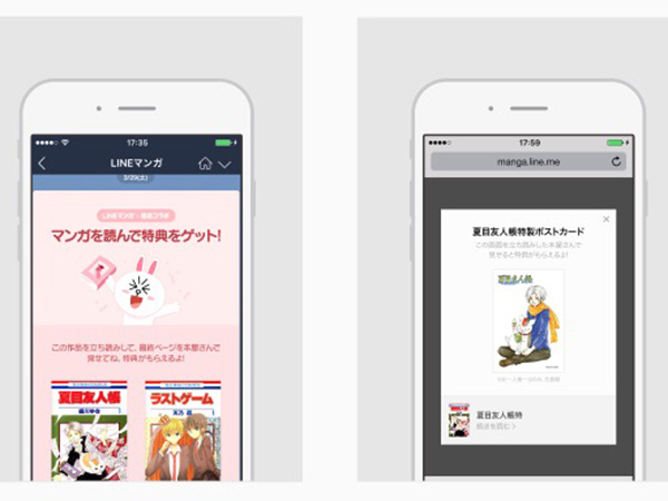 本屋に行くと「LINEマンガ」から“試し読み”が届く、読めば「夏目友人帳」グッズ等がもらえる