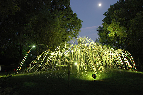 奈良県の生駒市高山竹林園で秋夜に浮かびあがる竹の造形作品の展示を行う「高山 竹あかり」