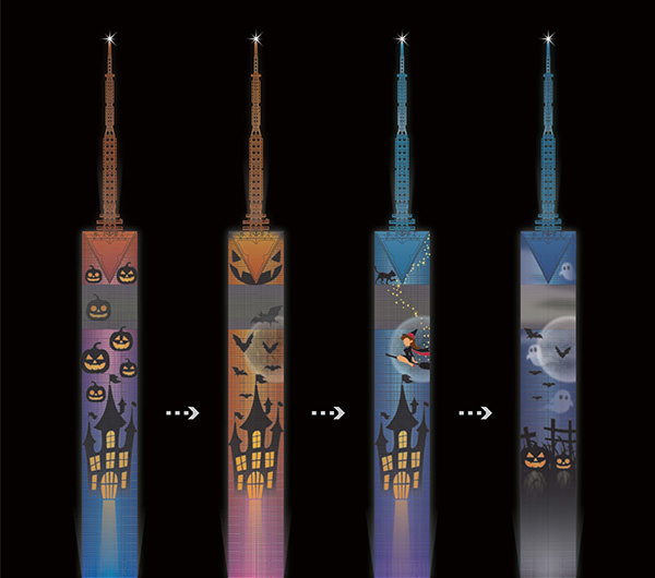 今回のイルミネーションでは、タワー塔体にタワーハウスが出現し、そこに住む悪戯好きの魔女が、魔法をかけて邪悪な墓場へと変えていく。月夜にはコウモリが羽ばたき、墓場からは不気味な笑みを浮かべたジャックオーランタンが出現。3分30秒で演出が1周する。同社発表によると、タワー塔体を用いた動くハロウィンイルミネーションの点灯は全国初とのこと。そのほかにも福岡タワーでは、ハロウィン衣装で写真撮影できるフォトスポットやハロウィンメイクコーナーをはじめ、各種のハロウィンにまつわる企画が実施される。