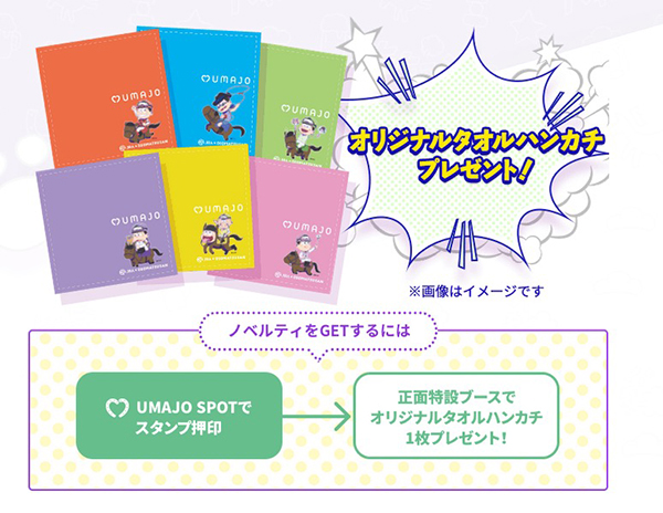 10月29日〜12月18日の全16日間、東京競馬場と中山競馬場でオリジナルグッズを限定販売する「走れ!おう松さん限定グッズ販売イベント」を開催。グッズ購入は抽選となるが、抽選に参加したユーザーは、オリジナルデザインの「UMAJO入門書」がプレゼントされる「UMAJO×走れ!おう松さんスペシャルイベント」にも参加できる。