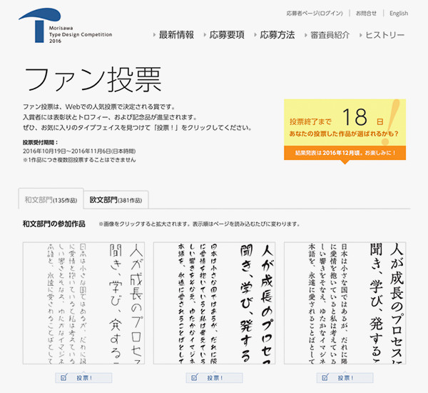 「タイプデザインコンペティション 2016」ファン投票ページ
