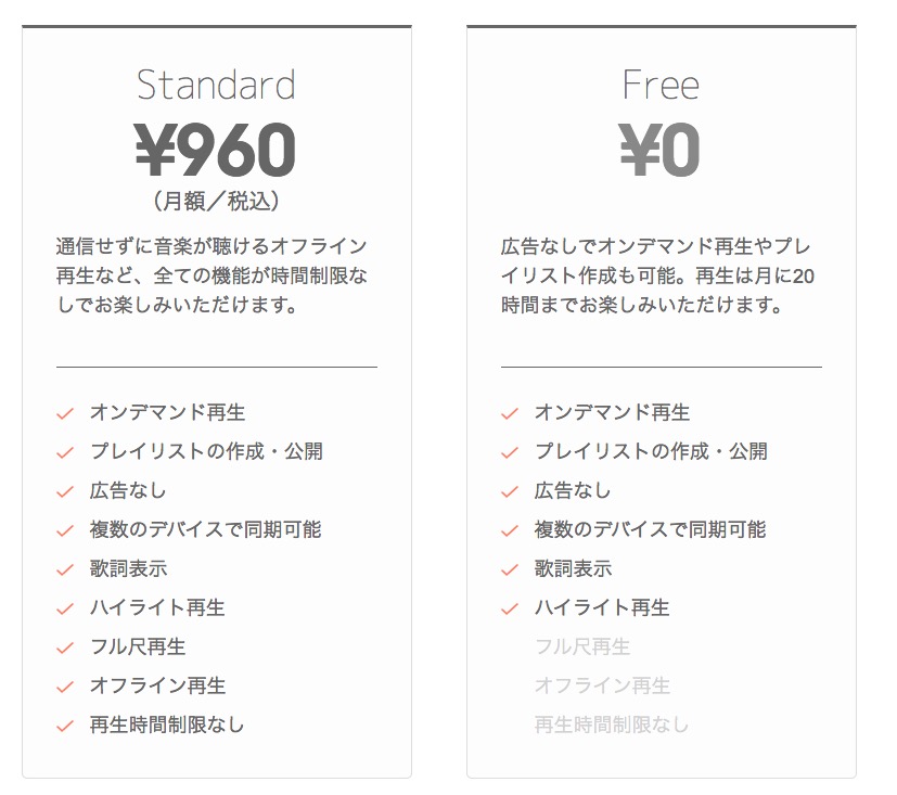 アワではこの無料プランのほかに月額960円の「Standardプラン」を用意しているが、新「Freeプラン」との違いは、「フル尺再生可能」「オフライン再生可能」「再生時間制限なし」となっている。