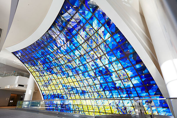 本イルミネーションは参加無料で、会場周辺のレストランなどで楽しむことも可能だ。さらに国立大ホールでは、12月7日(水)/ 8日(木)/ 13日(火)/ 14日(水)の17:00〜21:30に、星座をモチーフにしたステンドグラスを一般開放(1月以降の日程はパシフィコ横浜Webサイトで順次案内)。この「星座 '94横浜」は平山郁夫画伯(1930〜2009年)による原画を元にデザインされており、国立大ホールがオープンした1994年の開港記念日(6月2日)に横浜上空に見えた星座を配置してギリシア神話の世界を描いている。