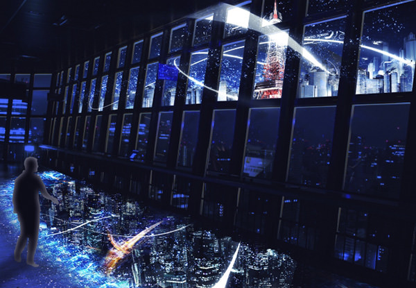 本イベントは、一昨年と昨年に続いて今年も開催が決定した。演出はクリエイティブカンパニーの株式会社ネイキッドが手掛けている。六本木・新宿方面では未来の東京夜景のイメージを映し出す「未来都市ウォークスルー」、東京湾方面では江戸時代から現代へ移り変わる東京の風景イメージを投影する「東京タイムトラベル」、皇居方面では眼前に広がるビルの輪郭と名称が表示される「マッピング夜景ガイド」を展開。大展望台フロア内では2カ所の床面に立体映像が投影され、錯覚を利用したトリック写真の要領での撮影も楽しめる。料金は大展望台までの展望料金のみ。