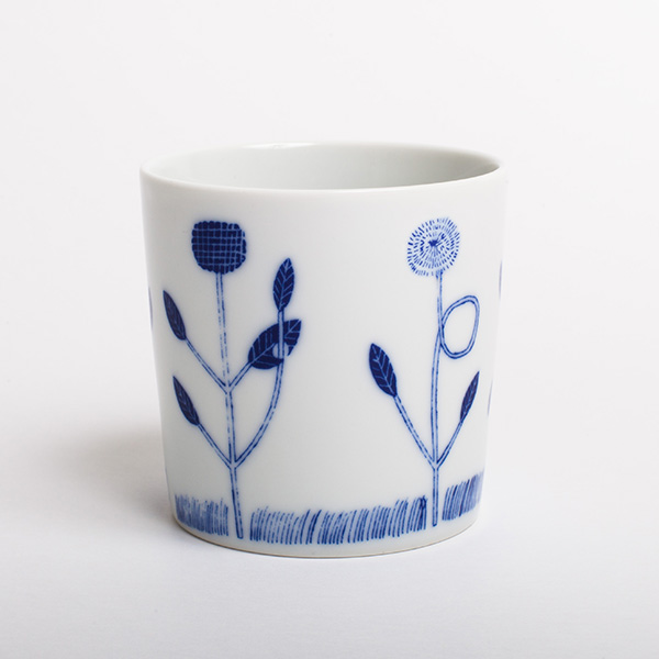 本展では、熊本県産の天草陶石を使用して有田・波佐見の窯元と作った多様なデザインのカップを展示販売。第一線で活躍するクリエイターから新進気鋭のアーティストまで、総勢約170人がボランティアでデザインに参加している。カップの製作は、長い歴史の中で培われた伝統技術を受け継ぐ有田・波佐見の窯元によって、1つずつ手作業で行われた。真っ白な磁器に藍色が映えるカップを購入することで、誰でも日常にデザインを取り入れることができ、そこに込められた思いとともにチャリティーに参加できる。