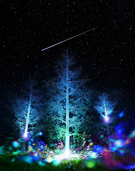 流れ星とイルミネーション演出を連動させるプロジェクト「NIHONBASHI-願いの森」
