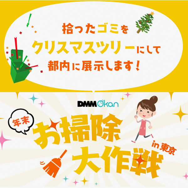 本イベントは、株式会社DMM.comが新規事業としてリリースした家事代行サービス「DMM Okan」(https://okan.dmm.com/)と連携した企画だ。「DMM Okan」は、家事代行の依頼や家事代行スタッフのマッチングをスマートフォンで完結できるサービス。リリースを記念して、12月4日(日)と12月11日(日)に、実際にサービスで稼働するキャスト(Okanチーム)が、掃除アイドルユニットの「東京CLEAR’S」やパフォーマンス集団「GOMI拾い侍」などのゲストとともに、都内で清掃活動を実施した。