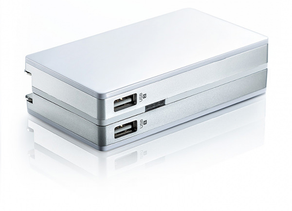 本体を振ることでバッテリー残量を確認できるシェイク機能を搭載するほか、4つのLEDを搭載し、5段階でバッテリー残量を表示する。2ポート合計最大2.1A出力で、バッテリー容量は10000mAh。サイズは58(幅)×28(厚さ)×105(奥行)mm、重量は約230g。