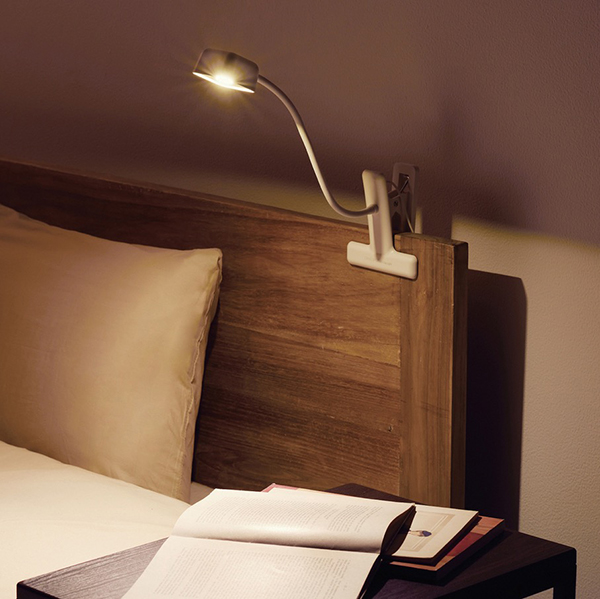 本製品は、末端にクリップを備え、「はさんで」「置いて」「引っ掛けて」の3WAYスタイルで使えるLEDライト。厚さ10〜35mmのものを挟めるので、デスクやベッドのヘッドボードなど、様々な場所に設置できる。また、クリップ底面には滑り止めがあり、直置きのスタンドとして使ったり、壁から突き出ているネジなどに引っ掛けて使うことも可能。