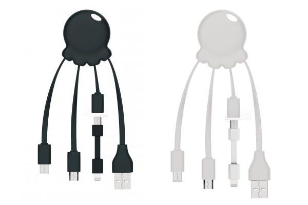 タコのようなデザインでType-CとLightningとmicroUSBに対応するマルチ充電ケーブル「Octopus」