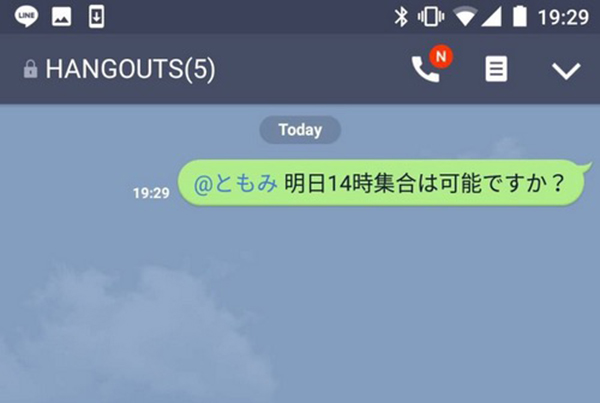 今回のアップデートでは、複数の新機能を搭載。複数人のトークルーム・グループトークルームでの新機能としては、参加メンバーを指定してメッセージを送れば、テキストに青文字で「@友だちの名前」表記され、分かりやすくなるメンション機能が加わった。これにより、多くのメッセージが飛び交う大勢でのトークでも、誰宛のメッセージかひと目で分かるようになった。