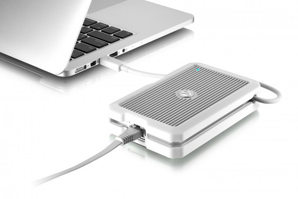 ThunderboltおよびThunderbolt 2によるコンピュータ本体からのバスパワー給電に対応し、電源アダプタがg不要。耐衝撃性と放熱効率に優れたアルミ合金製ヒートシンクを採用している。サイズは80(幅)×130(奥行)×24(高さ)mm、重量は380g。