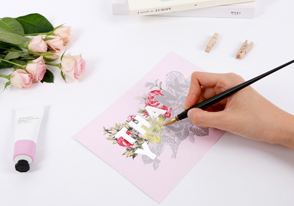 スクラッチ技法に特殊な画材や難しい手順は必要なく、ピンク色のスクラッチボードの上に灰色で描かれたデザインを削るだけ。ピンク色の部分も全てスクラッチできるため、自分なりのアレンジを加えることも可能だ。乾燥の工程が不要であるため、スクラッチペン1つで、いつでもどこでも気軽に制作を楽しめる。完成したポストカードは、大切な人に贈ったり、額縁に入れてインテリアとして飾ったりできるなど活用の幅が広い。